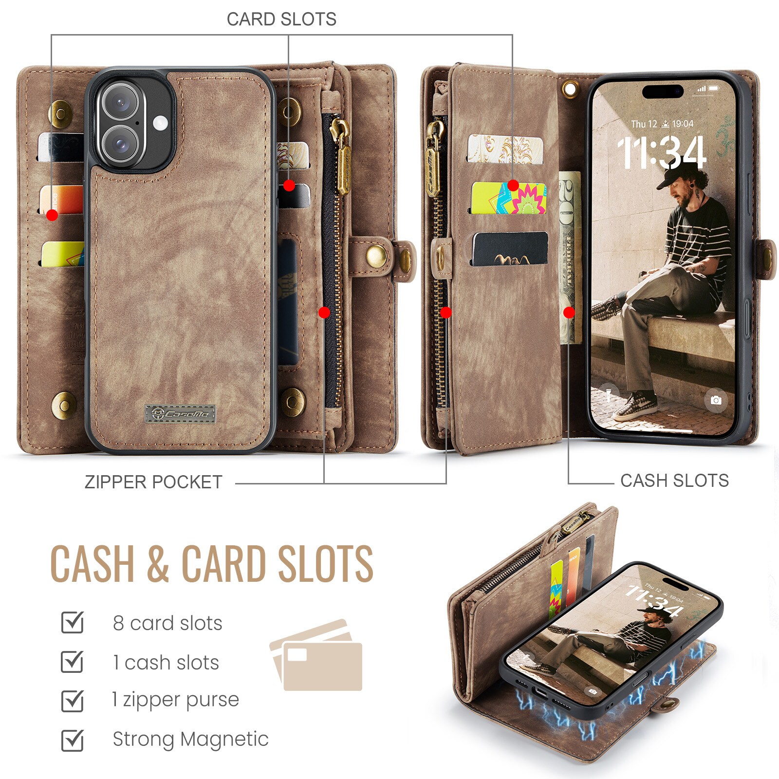 Tjek dette alsidige mobiletui fra CaseMe til Apple iPhone 16. Det har en ekstra rummelig pungfunktion og et praktisk magnetcover!